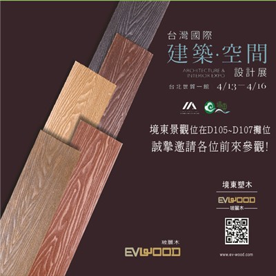 4/13~4/16將在台北世貿一館舉辦 台北國際建築空間設計展, 誠摯邀請您一同前來參與! 非常希望能在展會中見到您,與您分享境東景觀的最新產品及消息喔! 感謝您!我們4/13~4/16台北世貿見!